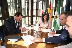 La alcaldesa de Almería, María del Mar Vázquez, y el director del Servicio Municipal de Limpieza Urbana y Playas de Acciona, Javier López, han firmado un convenio dentro de la Estrategia Regional Andaluza para la Cohesión e Intervención Social (Eracis+) que permitirá la inserción laboral de una quincena de vecinos de zonas desfavorecidas con el fin de reforzar la limpieza de los barrios.
